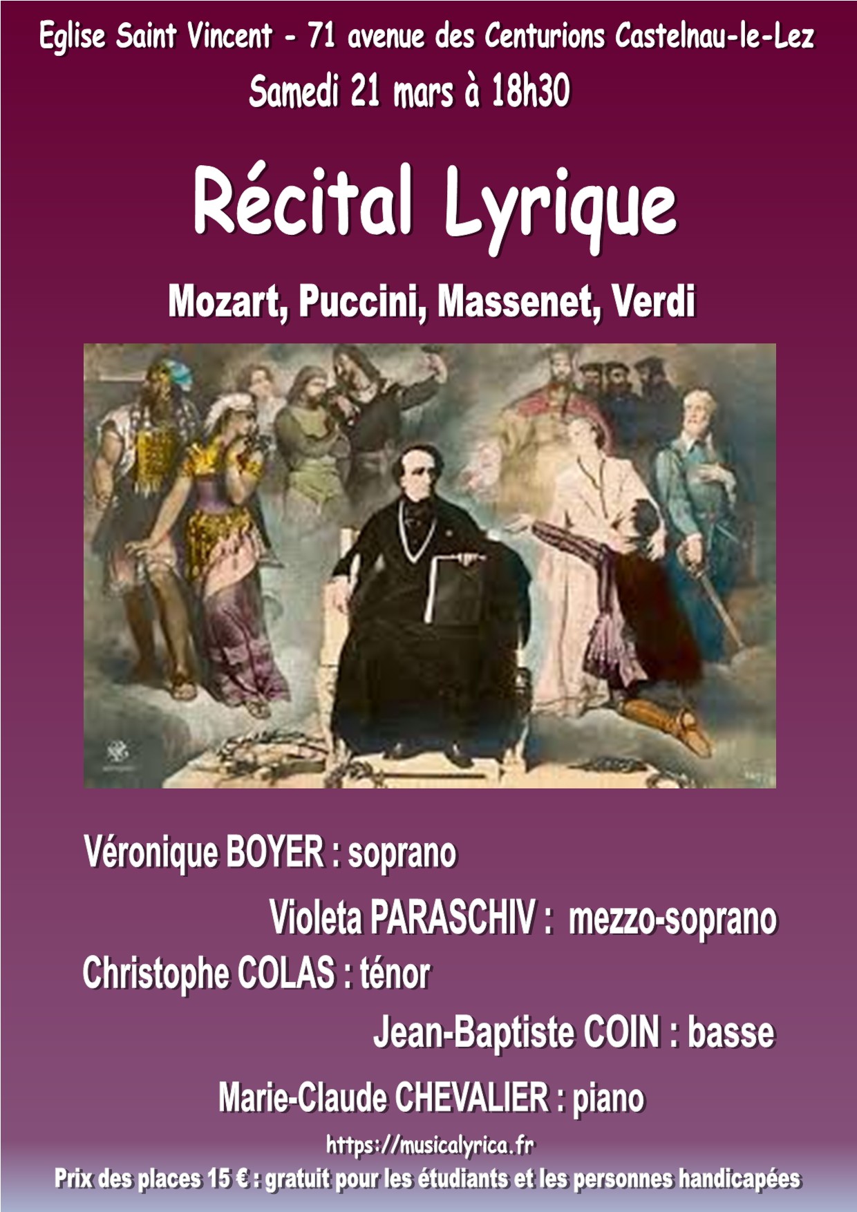 | 21 mars Eglise Saint Vincent Castenau Le Lez | ![]() | Airs d’opéra Mozart Purcell Puccini |